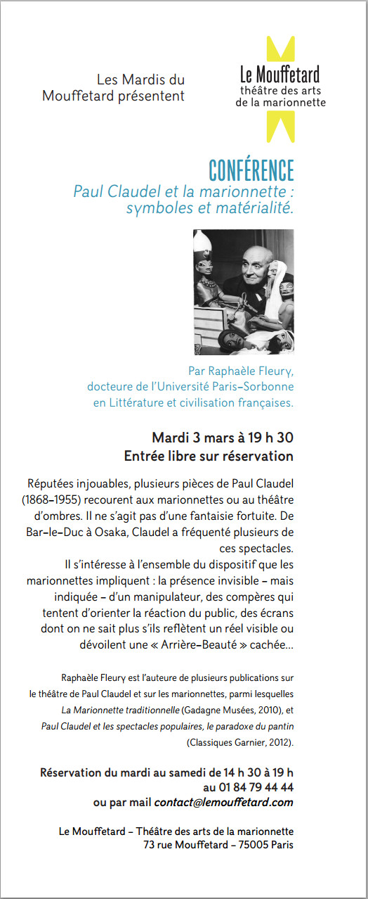 « Paul Claudel et la marionnette : symboles et matérialité » — Les Mardis du Mouffetard